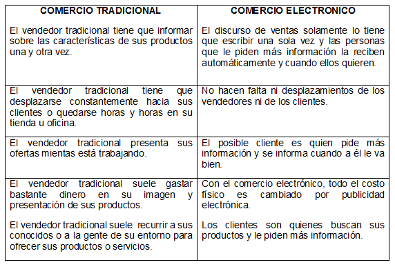 1. Realizar la lectura ‘Comercio Electrónico’, y los documentos presentados, para establecer cinco diferencias entre el comercio tradicional y el E-commerce.