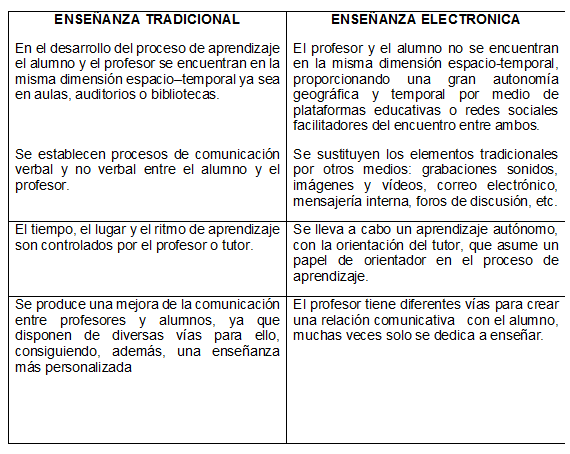 4. Identifique las diferencias existentes entre la enseñanza tradicional y electrónica.